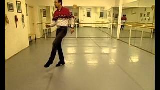 5-8 Step L to left side, step R behind L, turning 1/4 left step on L, touch R next to L (9:00)