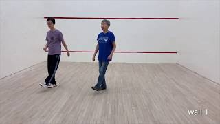 5-8 Walk back left diagonal stepping L, R, L, touch R next to L as you square up with front wall (12:00)