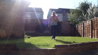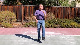 WALK FORWARD DIAGONALLY RIGHT, KICK, WALK BACK DIAGONALLY LEFT, TOUCH