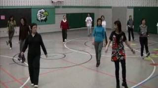 1-4 Walk forward left diagonal stepping R, L, R, kick L forward (10:30)