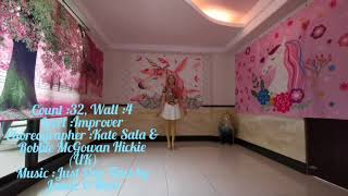 7&8Cross Left behind Right. Step Right to Right side. Cross step Left over Right. (Facing 12 o’clock)