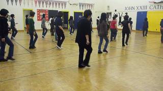 1&2  	step forward on right, step left next to right, step forward on left