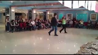 1-2 Step fw R, turn 1/4 L stepping down on L 09:00