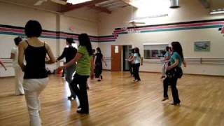 7-8    	Cross left toe slightly in front and across right, slap heel down as you click your fingers