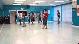 1-2Step Left to Left side, cross step Right over Left (slight drop of Right knee as you cross over)