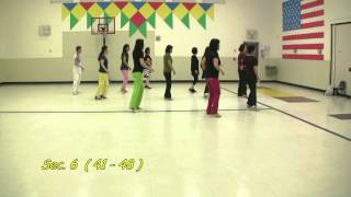 &5-6Step left next to right, Touch right toe forward with right knee bent, HOLD