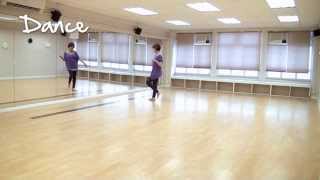 1-2Stomp right next to left, Kick right forward