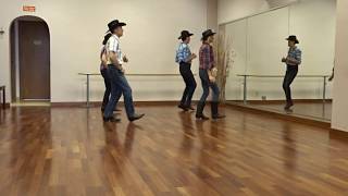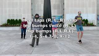 RIGHT HEEL TAPS1-4Touch right heel forward, touch right together, touch right heel forward, touch right heel forward&Step right togetherLEFT HEEL TAPS5-8Touch left heel forward, touch left together, touch left heel forward, touch left heel forward&Step left togetherRIGHT, LEFT, RIGHT HEEL TAPS AND CLAP9&Touch right heel forward, step right together10&Touch left heel forward, step left together11-12Touch right heel forward, clapBUMP HIPS RIGHT TWICE, BUMP HIPS LEFT TWICE, BUMP HIPS RIGHT AND LEFT TWICE13-14Rock right in place and bump hips right, bump hips right15-16Recover to left and bump hips left, bump hips left17-20Bump hips right, bump hips left, bump hips right, bump hips left (weight to left)RIGHT FORWARD CHA-CHA, LEFT BACKWARD CHA-CHA21&22Step right forward, step left together, step right forward23-24Rock left forward, recover to right25&26Step left back, step right together, step left back27-28Rock right back, recover to leftRIGHT FORWARD CHA-CHA AND ½ TURN RIGHT, LEFT FORWARD CHA-CHA AND ½ TURN LEFT29&30Step right forward, step left together, step right forward31-32Step left forward, turn ½ right (weight to right)33&34Step left forward, step right together, step left forward35-36Step right forward, turn ½ left (weight to left)RIGHT FORWARD, ¼ TURN LEFT, STOMP, AND CLAP.37-38Step right forward, turn ¼ left (weight to left)39-40Stomp right together, clapREPEATOPTION 1:1-4Touch right heel forward 4 times&Step right together5-8Touch left heel forward 4 times&Step left togetherOPTION 2:1Touch right heel forward2Touch right together3-4Touch right heel forward, touch right heel forward&Step right together5-8Repeat 1-4 with left footOPTION 3:1Hop feet apart2Hop and cross right over left3-4Turn full turn to left5-8Repeat 1-4, either in the same or opposite directionOPTION 4: (8-BEAT SYNCOPATED STEPS, A.K.A. PRETZELS)1Cross right over left&2Step left to side, touch right heel forward&3Drop right toe, step left over right&4Step right to side, touch left heel forward&5Drop left toe, step right over left&6Step left to side, touch right heel forward&7Drop right toe, step left over right&8Step right to side, touch left heel forwardOPTION 5: (QUARTER TURN, HALF TURN)35-36Step right forward, turn ¼ left (weight to left)37-38Step right forward, turn ½ left (weight to left)OPTION 6: (ST. LOUIS STYLE, WHICH IS 44 COUNTS)37-40Repeat 29-3241-43Step left to side, turn ¼ right (weight to right)43Stomp left beside right44Clap