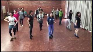 &3-4Hop/step left to left diagonal, Touch right beside left, Hold **RESTART WALL 9**