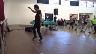 1 - 2Step L backwards and Sweep R from front to back (1), Hold (2)	3:00