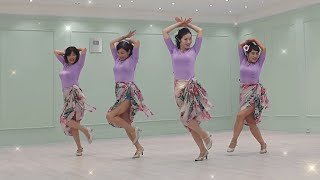 [25 – 32] L fwd, R kick, R back, ¼ turn R looking back, ¼ turn L, R kick-ball-cross, R side