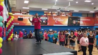 1-2Step forward on RF and pop L knee, Step forward on LF and pop R knee