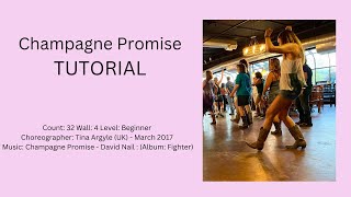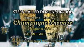 | Champagne Promise er en letflydende 32/4 beginner, der med sit rolige tempo og små skift i retning giver nye dansere mulighed for at føle musikken uden stress. Den er fyldt med klassiske grundtrin, shuffle og lette steps, som gør den perfekt til undervisning eller som en afslappet dans på gulvet.
