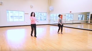 5 - 8Step R back to right diag. (5), Touch L next to R (6), Step L fw to left diag. (7), Brush R across L (8) 3:00