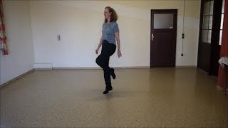 5&6Cross right over left to face left diagonal, small hitch of left knee