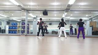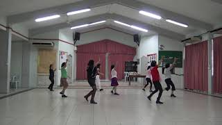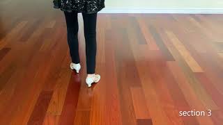 1,2,3,4Step fwd on R, Step fwd on L, Step fwd on R , Kick L foot fwd