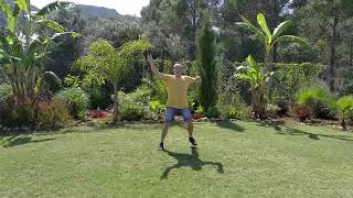 5,6,7,8Step back on L, Step back on R, Step back on L, touch R beside L.