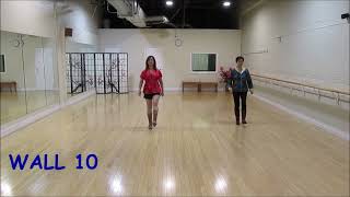 RESTART: During the 5th sequence after count 8 (facing 12:00) restart the dance after you touch R beside L.