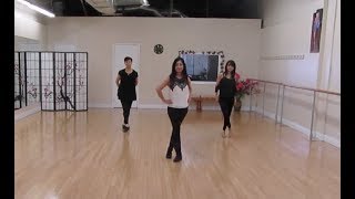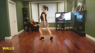 &6-7Step Left to Left side (slight diagonal to Right corner) step Right next to Left as you push hips to Left side. Cross step Left across Left.