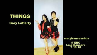 Things (29) er en 32/4 beginner linedance, jordnær og ligefrem, med et trinmønster der matcher musikkens rolige tempo og fortællende stil. Den er let at lære, men stadig musikalsk tilfredsstillende.