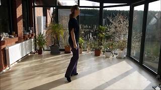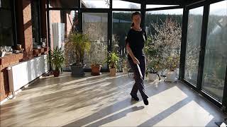 5-6Step forward on left, ½ pivot right stepping forward on right [9:00]