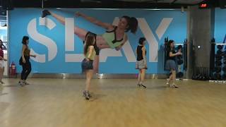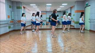 5 – 8Step Left to Left side. Close Right beside Left. Step back on Left. Kick Right foot forward.