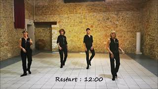 Restart: On wall 4, starts facing 9:00. Restart happens after 16 counts, facing 12:00.