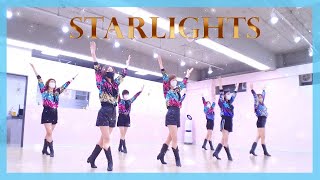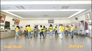 Adding: Step right to right side, taking both arms out to sides with palms open raising them up to the 'Starlights'