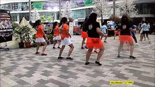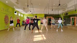 Fun styling You can bend down and slap the floor with your left hand instead of clapping (&), Slowly bring body up while raising both arms up and out infront of body while doing the rock recover x2 (5 – 8)