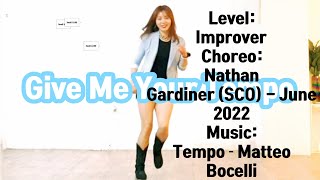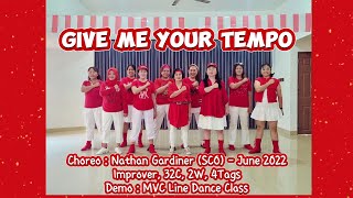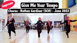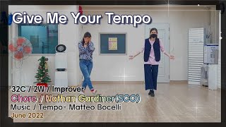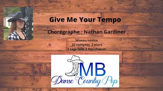 | Give Me Your Tempo er en elegant og stemningsfuld 32/2 improver-linedance, koreograferet af Nathan Gardiner fra Skotland i juni 2022. Dansen har et flydende flow og udnytter musikkens smukke rytme og dramatik til fulde.