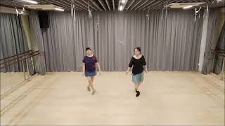 Lockstep forward, ½ turn right, samba whisks or jump and hold.
