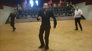 Cross over, back wards, triple left, modified forward v step, coaster back wards.