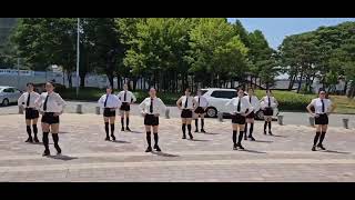 5-6(option) LF cross over RF on L-heel, LF twist toes to L while on L-heel & RF step side(harder option)