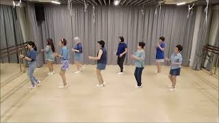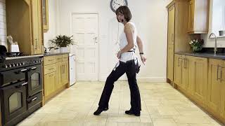 7-8Step back on RF to R diagonal, Touch LF next to RF and clap