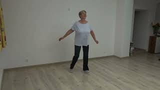 5-6Step back on RF to R diagonal, Touch LF next to RF and clap