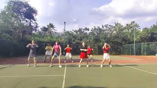 5,6,7,8Step L to L side, Touch R together, Step R to R side, Touch L together