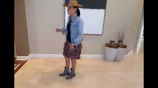 FAN, CENTER, FAN, CENTER1Fan-swivel right toe to right side2Return toe center3Fan-swivel right toe to right side4Return toe centerHEEL, HEEL, TOE, TOE1Tap right heel forward2Tap again3Tap right toe behind4Tap againHEEL, TOE, HEEL, TOE1Tap right heel forward2Tap right toe behind3Tap right heel forward4Tap right toe behindSTEP, HEEL, STEP, TOE1Step forward on right foot2Bring left foot through & tap left heel forward3Step backward on left foot4Bring right foot back through & tap right toe behindSTEP, HEEL, STEP, TOE1Step forward on right foot2Bring left foot through right tap left heel forward3Step backward on left foot4Bring right foot back through % cross-tap right toe behind left footSTEP, CROSS, SIDE, TOE1Step to right side on right foot2Cross left foot behind right foot3Step to right side on right foot4Cross-tap left toe behind right footSIDE, CROSS, SIDE, TOE1Step to left side on left foot2Cross right foot behind left foot3Step to left side on left foot4Cross-tap right toe behind left footSTEP, TAP, ¼ STEP, STOMP1Step forward on right foot2Tap left foot beside right foot making ¼ turn to left3Step forward on left foot4Stomp right foot beside leftREPEAT