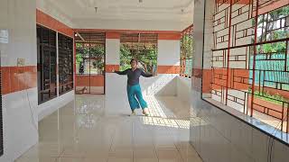 1Make 1/4 turn left stepping R to right as you raise L leg up slightly angle body to 6:00 pushing R arm forward [1] 9:00