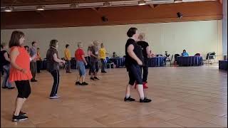 5-6Step right forward, pivot ½ left transferring weight on to left (6:00)