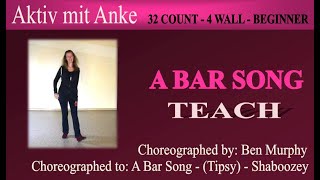 | “A Bar Song” (58) er en 32/4 absolute beginner linedance, enkel og energisk, skabt til helt nye dansere, der vil opleve glæden ved linedance uden svære trin. Dansen følger musikkens drive og skaber en festlig stemning på gulvet, hvor alle kan være med fra første takt.