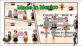 Made In Mexico (116) er en 32/4 beginner linedance, let, energisk og fyldt med country-feel. Den er bygget til at være tilgængelig for begyndere, men samtidig musikalsk nok til at være sjov for erfarne dansere. Trinene understøtter musikkens glade og mexicansk-inspirerede stemning, hvilket gør den oplagt til sociale aftener.
