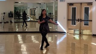 1,2,3,4Step L fwd, lock R behind L, step L fwd, sweep R around from back to front
