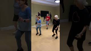 Optional instead of two step kicks 1-4: Step L forward, touch R together at L heel, step R back, kick L forward