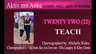 Twenty Two (22) er en 32/4 absolute beginner linedance med et enkelt og jævnt flow, perfekt til nye dansere. Trinene er lette at lære, hvilket gør dansen oplagt til undervisning eller som en afslappet social dans.