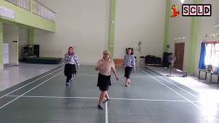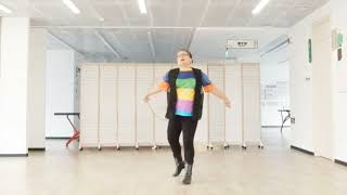 2a3LF cross over RF, RF step side, LF cross behind RF & sweep RF back