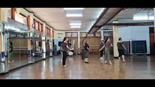 2&aRF step back, 1/8 turn L & LF step side, 1/8 turn L & RF step forward