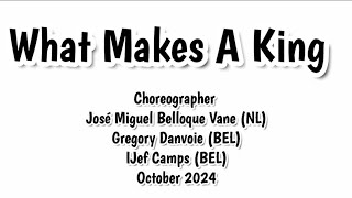 | What Makes A King er en dramatisk og teknisk krævende 48/1 advanced, der bruger gulvets ene væg til at fokusere på performance og intens udstråling. Dansen er bygget på præcise vægtskift, dybe følelser og et format, der udfordrer selv de mest rutinerede.