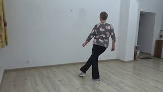 1,2,3,4(slightly diagonal) walk R,L,R, Kick left foot across