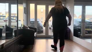5,6,7,8Step/ sway R back, recover weight fwd onto L, step/ sway R fwd, recover weight back onto L