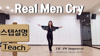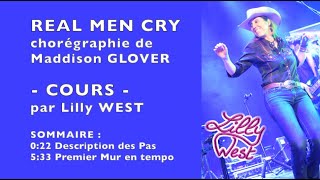 | Real Men Cry er en smuk 32-count, 4-wall linedance på improver-niveau, koreograferet af Maddison Glover fra Australien i februar 2025. Dansen har en blød, flydende stil med følelsesladede trinsekvenser, der understreger musikkens dybde og ærlige budskab. Maddison Glover er en af de mest anerkendte linedance-koreografer i verden. Hun er kendt for sin evne til at skabe danse, der er både musikalsk harmoniske og teknisk tilgængelige. Hendes koreografier spænder fra energiske uptempo-numre til følelsesladede ballader, hvor dansen virkelig fortæller en historie – og Real Men Cry er ingen undtagelse.